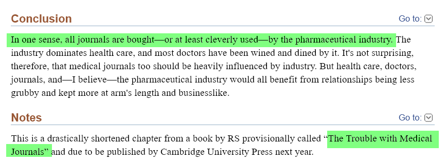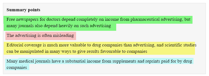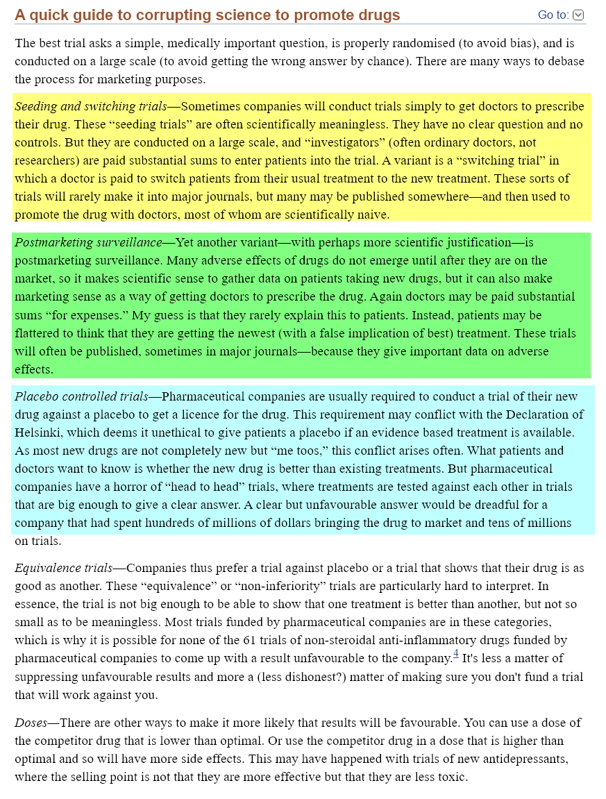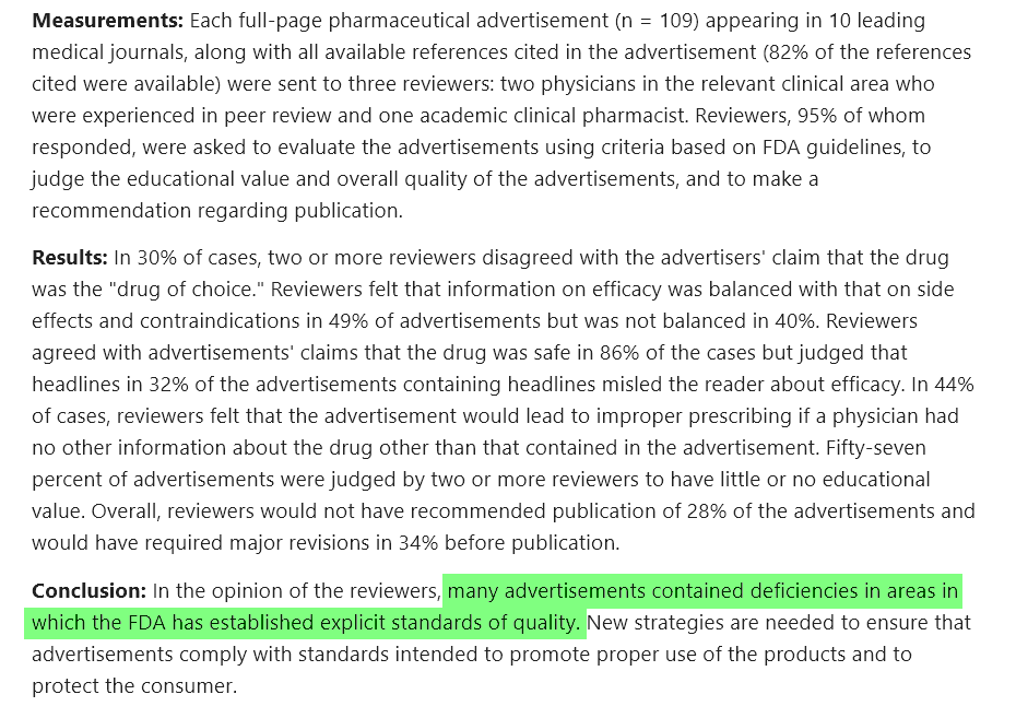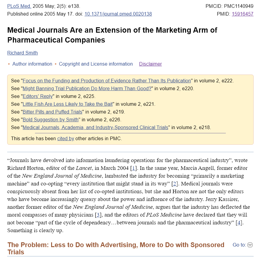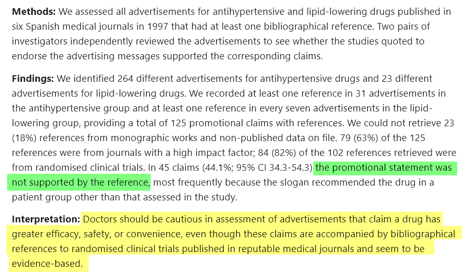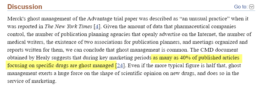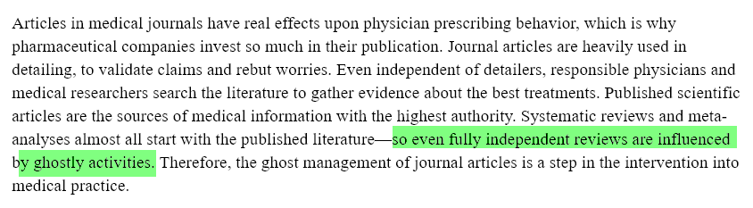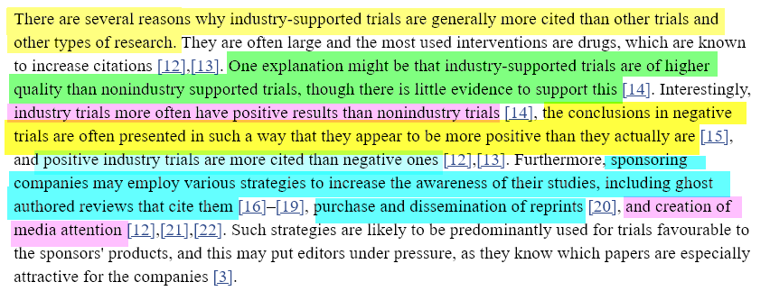Big Corrupt Pharmaceutical Companies use Scientific Literature as a Marketing Tool – and this has been a problem for as long as Journals have existed. It’s a known problem that is very difficult to overcome – if not impossible.