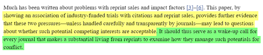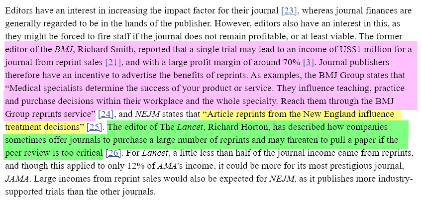 For example, they want to buy a million copies of these reprints because it’s a blockbuster drug and the sales reps are now going to go distribute the reprints of this journal article, and so now the journal is obviously going to become enormously rich on the basis of the reprint sales of the journal article.