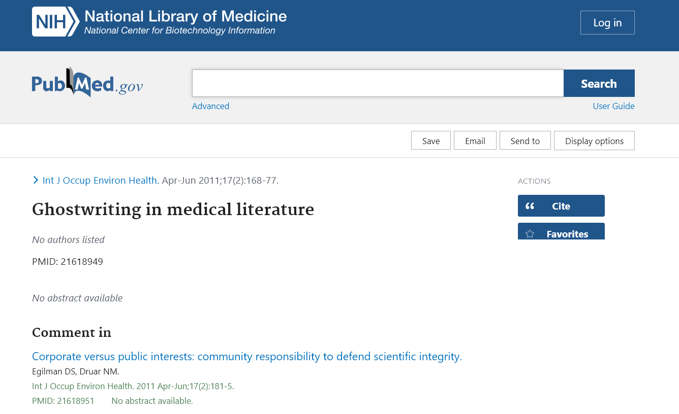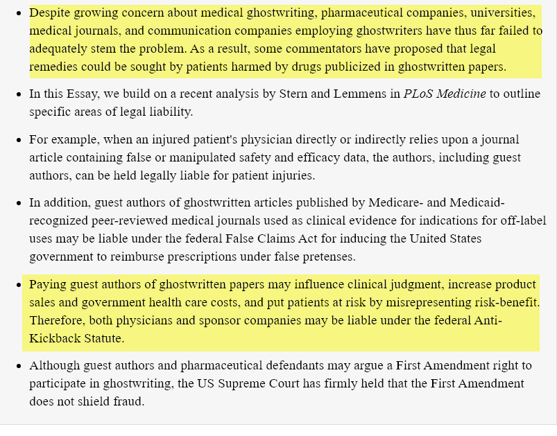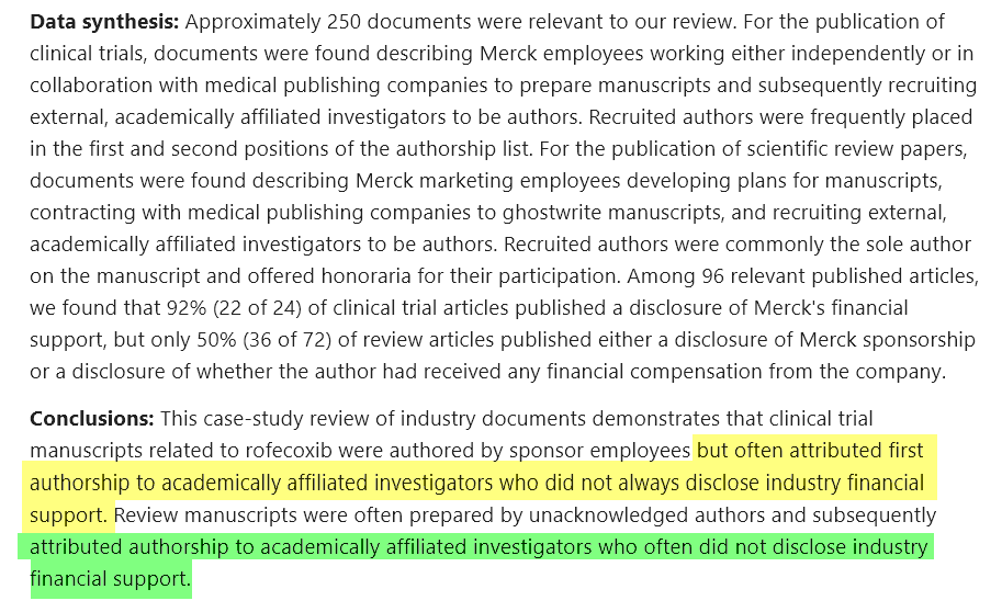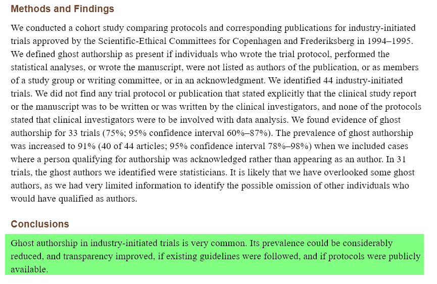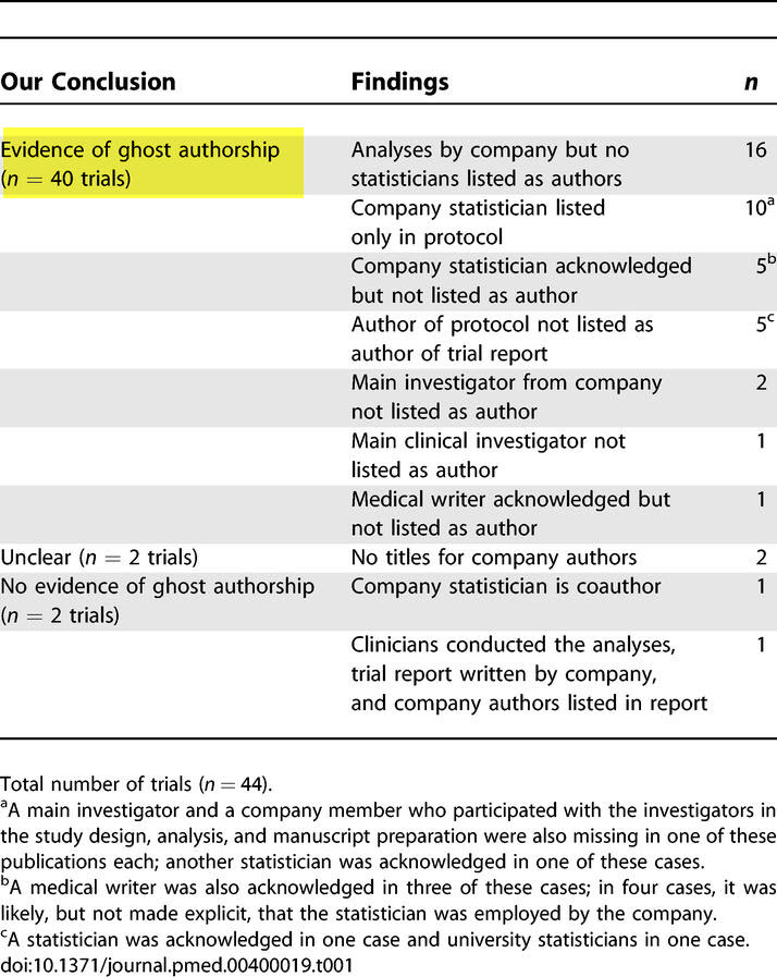 - Then they will find what they call “authors”, what we call honorary authors, namely academics, who will be paid to put their names on these papers. They might of had something to do with the clinical trial or something to do with the design of the trial, but they basically didn’t do any of the writing of the manuscript,