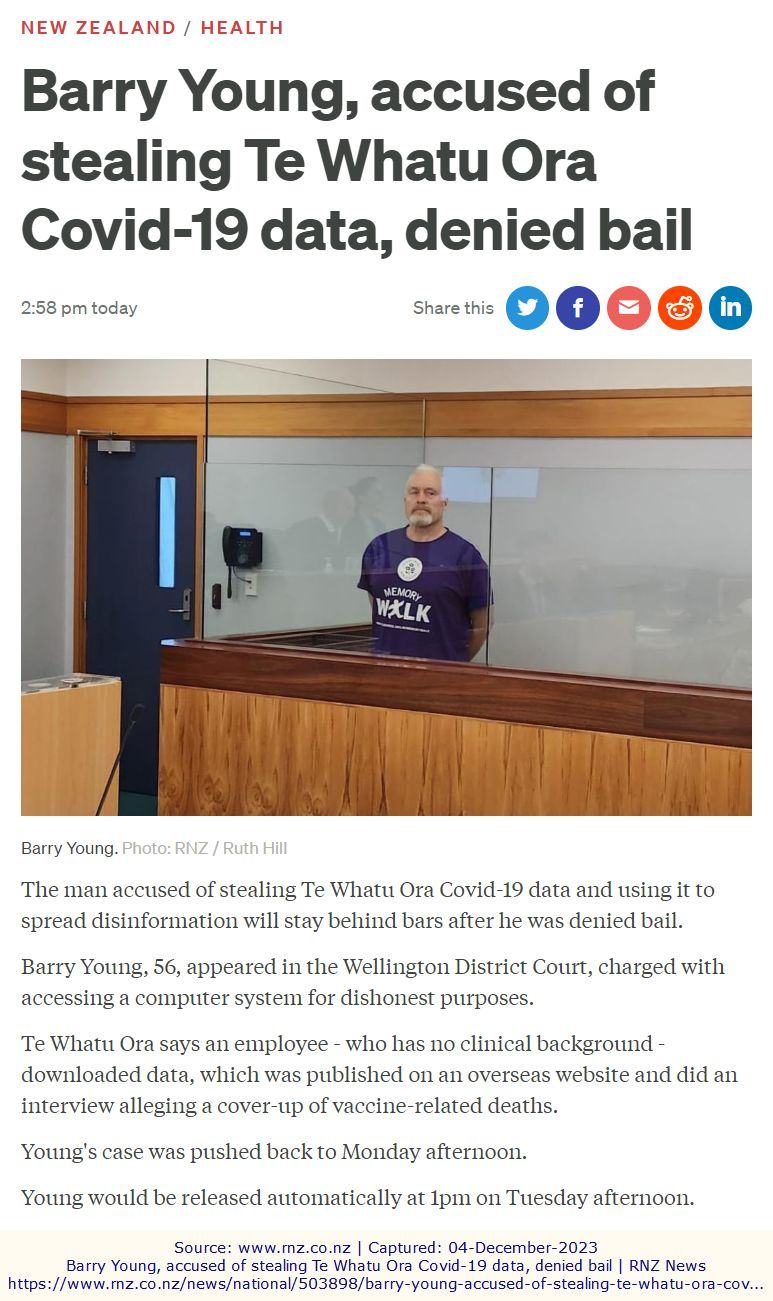 - 2:58pm Barry Young, accused of stealing Te Whatu Ora Covid-19 data, denied bail