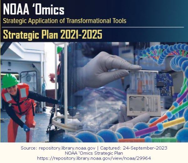 - NOAA ‘Omics Strategic Plan 2021 By United States. National Oceanic and Atmospheric Administration https://repository.library.noaa.gov/view/noaa/29964 ↥