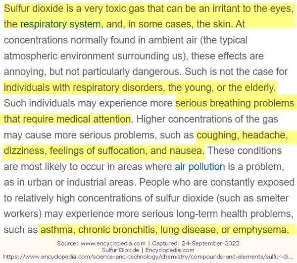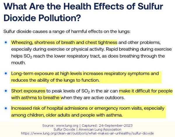 - American Lung Association What Are the Health Effects of Sulfur Dioxide Pollution? https://www.lung.org/clean-air/outdoors/what-makes-air-unhealthy/sulfur-dioxide ↥