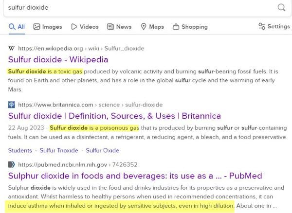 I don’t know much about Sulfur Dioxide though, so let’s have a quick search to get a brief overview: